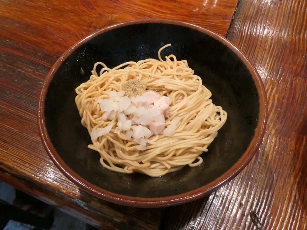 ここは​ ミシュランガイド ​に掲載されてから常に大行列ができている。そのため、わしも職場に近いここに​ 1年ほどぶり ​だった。定刻開店。山椒そば(肉ワンタン2個、海老ワンタン2個)、味付き替え玉の食券を購入。​ 系列店 ​でこのパターンを頼んだことがあるが、ここでは初めてだ。しかもここで海老ワンタンを頼んだのも、​ 1年半ほどぶり ​だった。