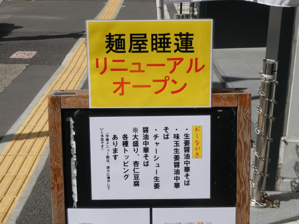 ​ これまでのレギュラーメニュー ​の提供が中止した後に数日間の休業があるかと思い込んでいたら、すぐ2月29日に新メニューでリニューアルスタートした「​ 麺屋 睡蓮 ​」に来た。