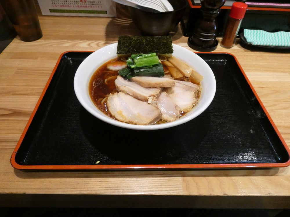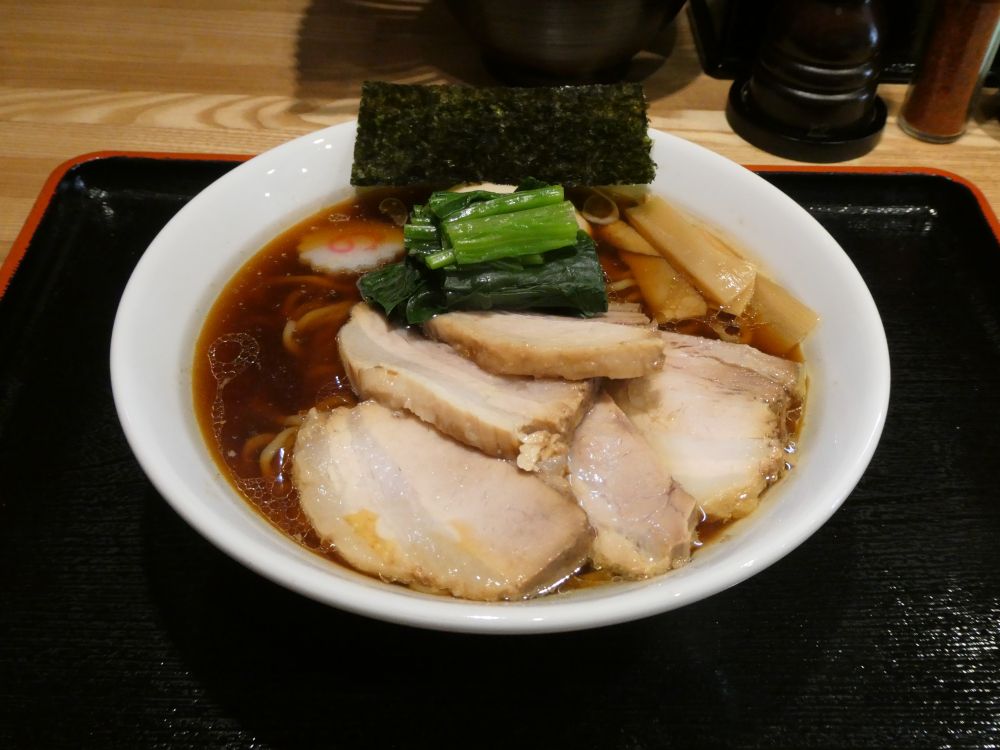 たぶん長岡系の生姜醤油ラーメンだ。生姜が香る濃口醤油スープはコクがあり、生姜、醤油タレ、出汁のバランスがよい。縮れ平打ち中太麺はもちもちした食感で絡めもよい。チャーシューの作り方と切り方も変わったようで、前よりやや硬くなり、脂身もやや少なめになった。ほうれん草もここで初めて食べたのだ。