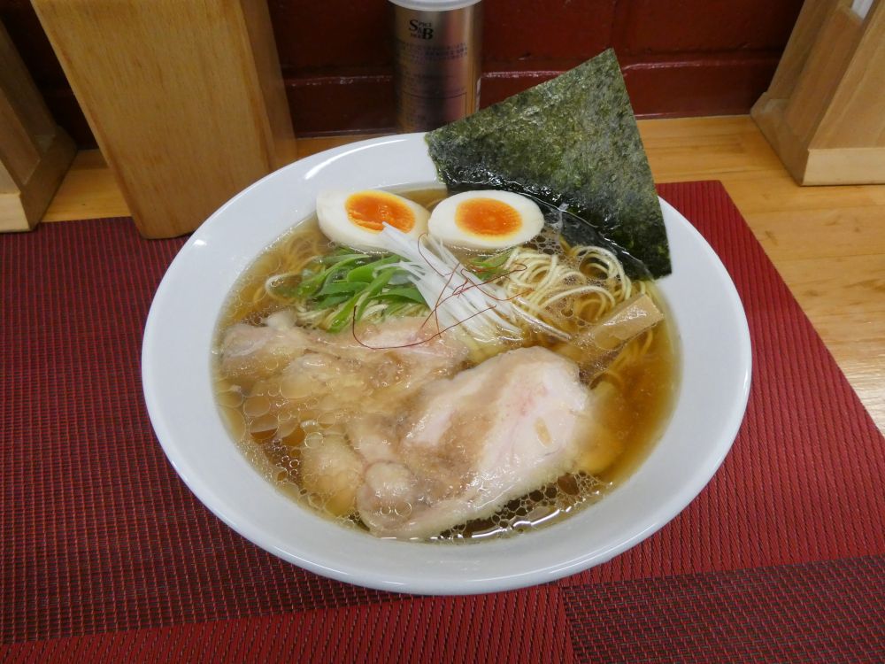 とりあえずブランチを摂ろう。​ 先月下旬 ​に閉店した「​ ゆきラーメン 山手 ​」の跡地にできた「​ らーめん一信 本郷店 ​」に入店し、一信鶏そば、味付玉子・鶏叉焼(3枚)の食券を購入してから着席。食券機と看板からみれば、​ 山手ラーメン ​の関係店と思われるね。