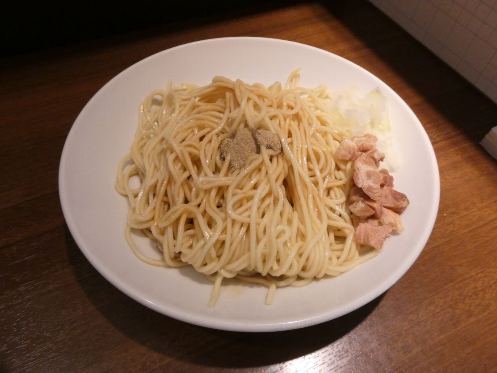 ラーメンの麺より麺の茹で加減がさらにカタメで、歯切れとタレとの絡めもよい。山椒オイルもほしいが、この時世じゃやはりスタッフに出してもらうことをやめよう。