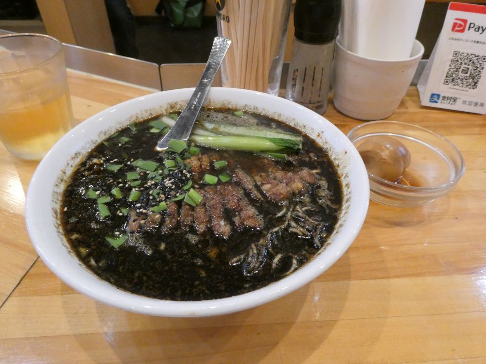黒担担は​ 3週間ぐらいぶり ​だったが、パーコーの注文は​ 1ヶ月ぐらいぶり ​で、黒担担パーコーという組み合わせは​ 1ヶ月以上ぶり ​だ。やはり黒ゴマタレは濃いめで香ばしくて、スーパーホットの辛さと合っている。それに合わせた細麺は歯切れと絡めがよい。パーコーは衣がパリパリして、肉が柔らかい。