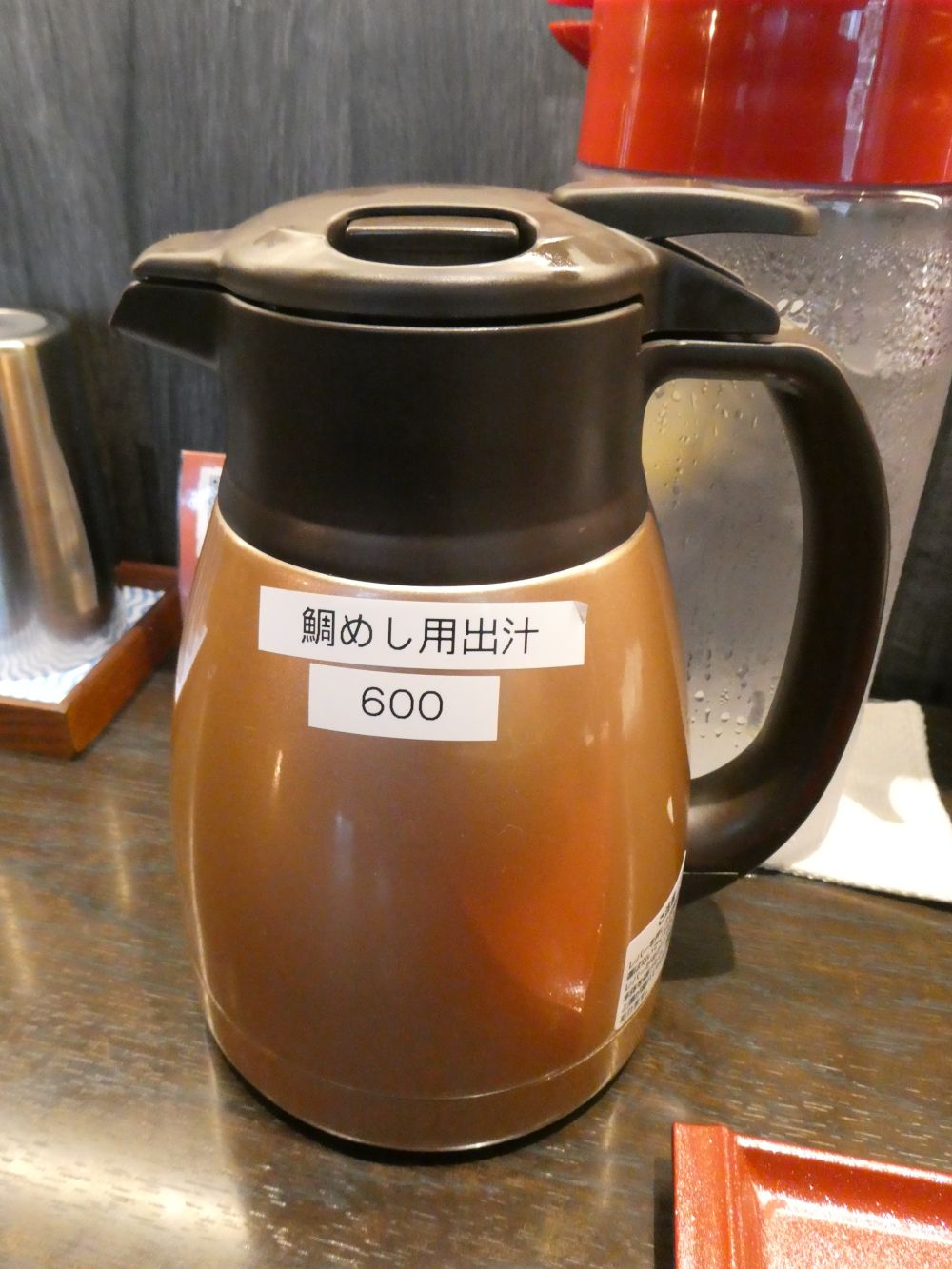 それから鯛めし用の出汁の登場。どのように食べたほうが良いかちょっと悩んだ。とりあえず少し飯に注いだ。出汁とメシの相性が良いが…。