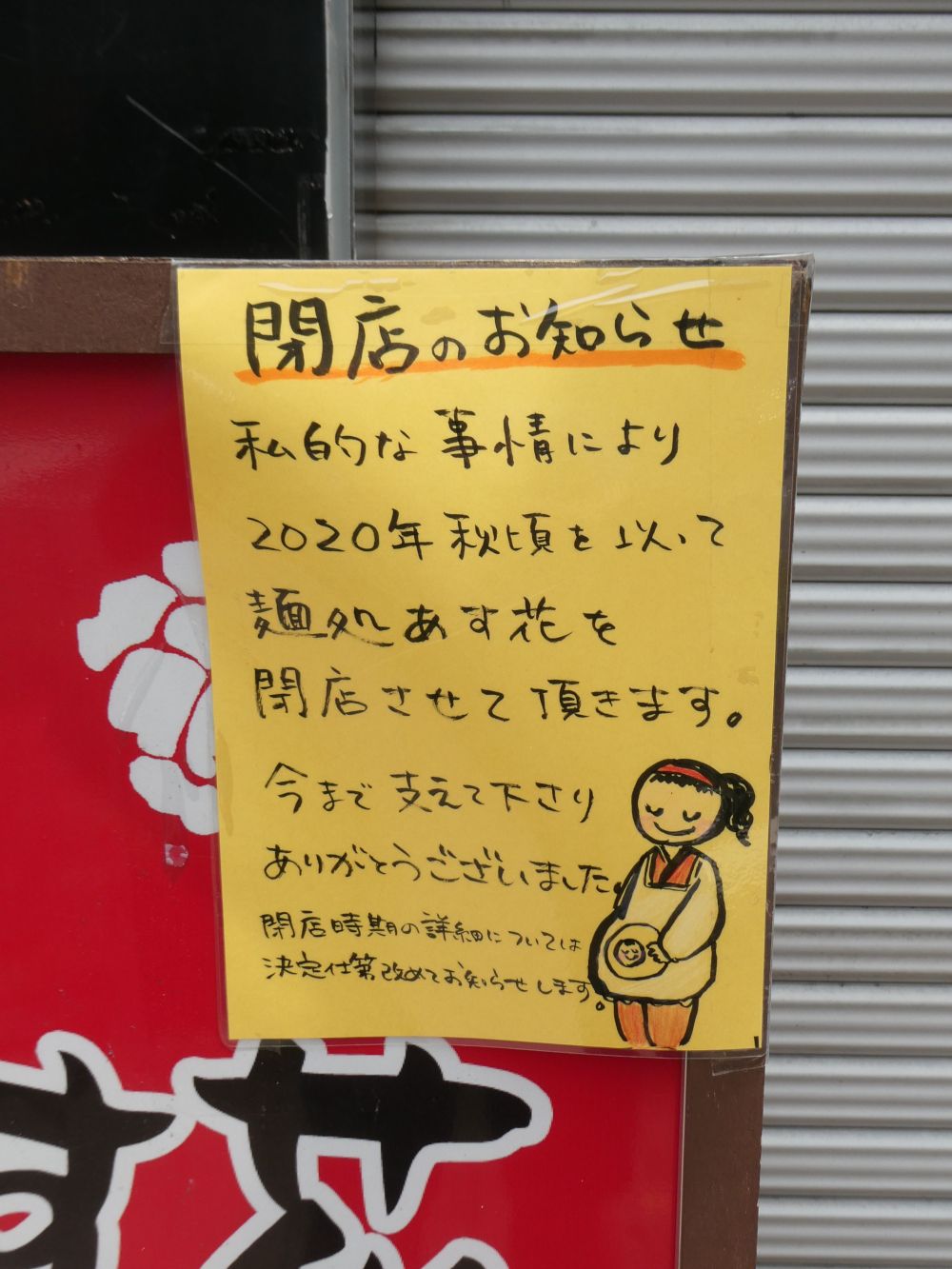 向かいの​ あす花 ​はもうすぐ閉店。しかし、武漢ウィルスとやら、新型コロナウィルスとやらのせいではなく、お産だね。いい店が消えたが、いい話だ。お幸せに。