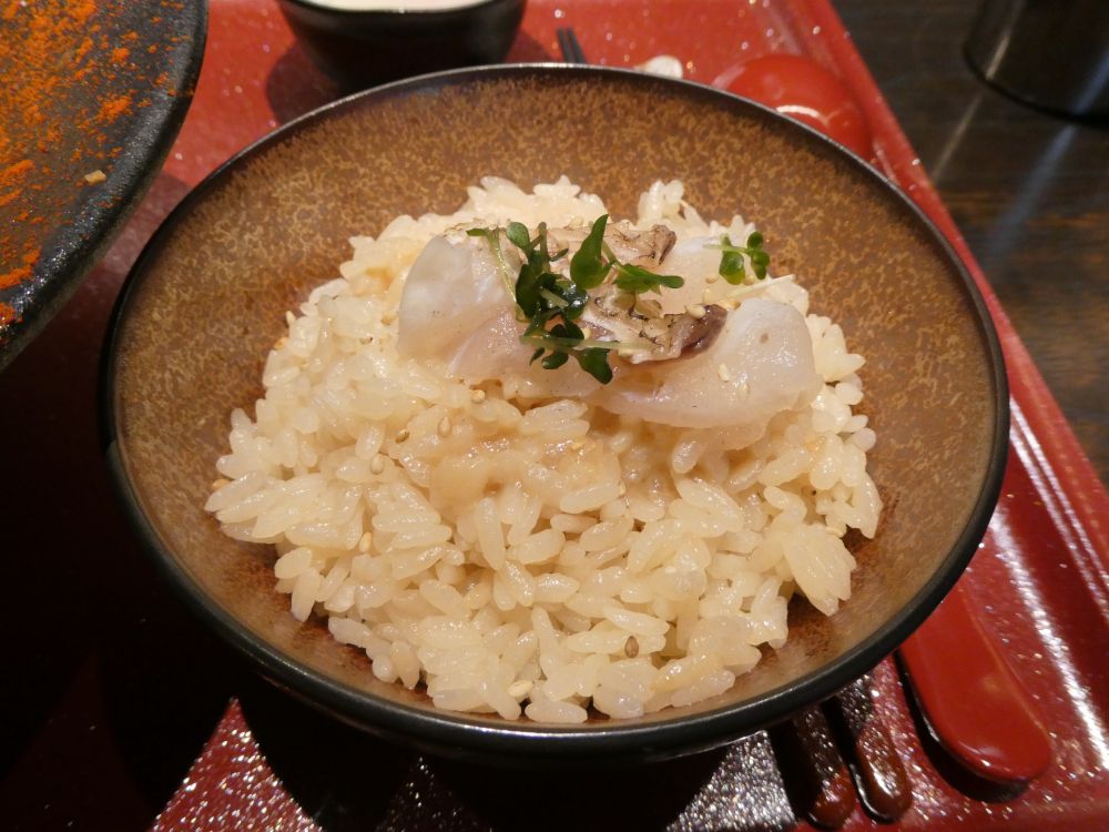 そして鯛めし。炊き込みご飯はタレと鯛の旨味の相性がよい。これはうまい。鯛の切り身も載せてあり、旨味もしっかりしている。