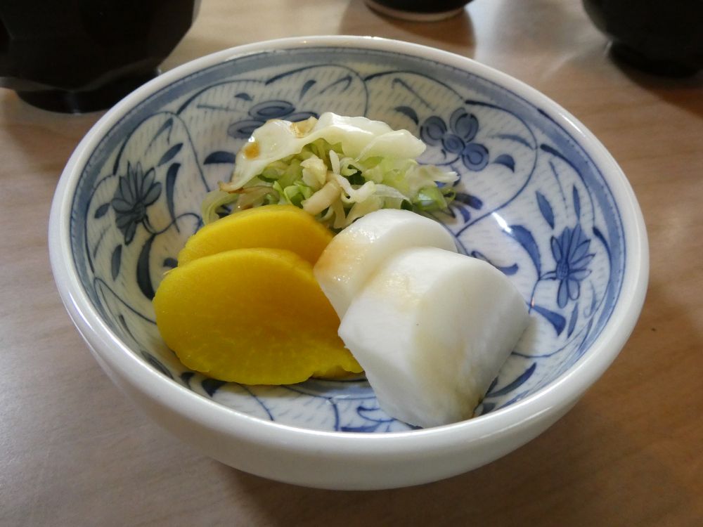 漬物と野菜サラダという組み合わせも珍しい。