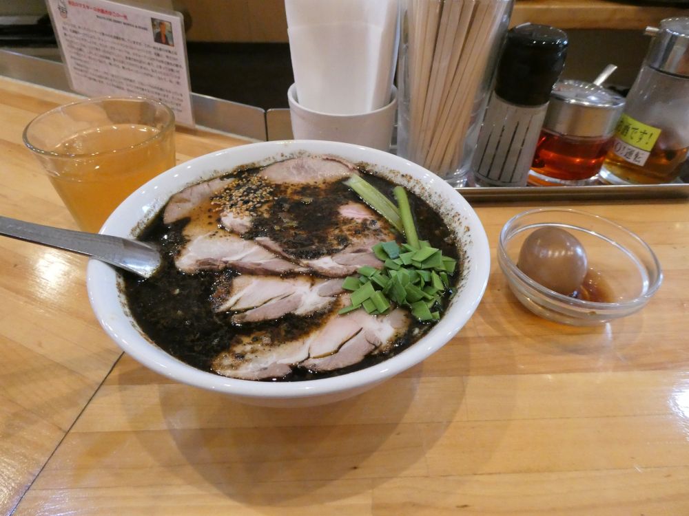 今日も長丁場なので、​ 体調管理 ​をしっかりしたい。というわけで、「​ 東京担々麺本舗 瀬佐味亭 ​」に入店し、Wロース黒担担麺のスーパーホットを注文し、クーポンでほかほか煮込み茶玉子をお願いした。