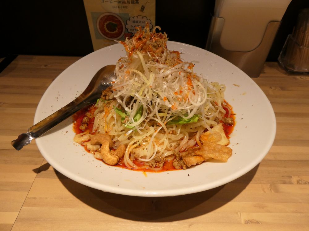 おいしかったね。冷やしとして温度がぬるいが、ちょうどよい感じだ。自分ならもっと辛さと痺れがほしいけど、これも十分であろうと思う。提供終了の前に汁ありも食ってみようか。ご馳走様。