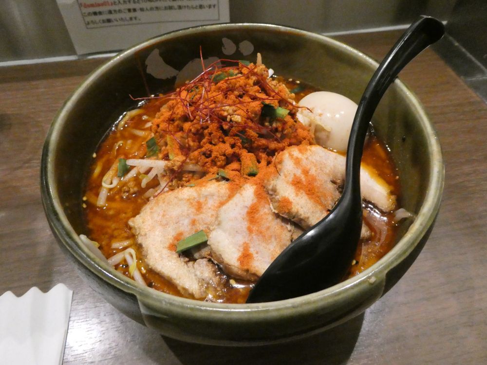 無事に「​ らーめんダイニング ど・みそ 八丁堀店 ​」を見つけ。ど・みそはすでに展開しており、都内で味噌ラーメン屋として一大勢力を作り上げたが、ここは二号店だ。しかし、​ そのど・みその代表取締役の齋藤賢治が9月16日に心不全で亡くなった ​とはラーメンファンとしてショックな出来事になるのだろう。ど・みその関連店に​ 訪問したばかり ​だが、ど・みその直営店は実に​ 10年ぶり ​。このタイミングでの訪問になったとは思わなかった。みそオロチョンらーめん、味玉、国産豚チャーシュー3枚を注文し、激辛をお願いした。