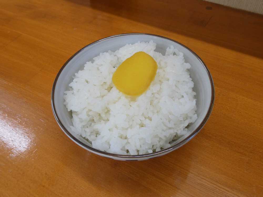 店主は麺の茹で揚げのタイミングを見てメシを提供。