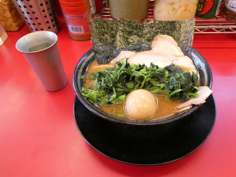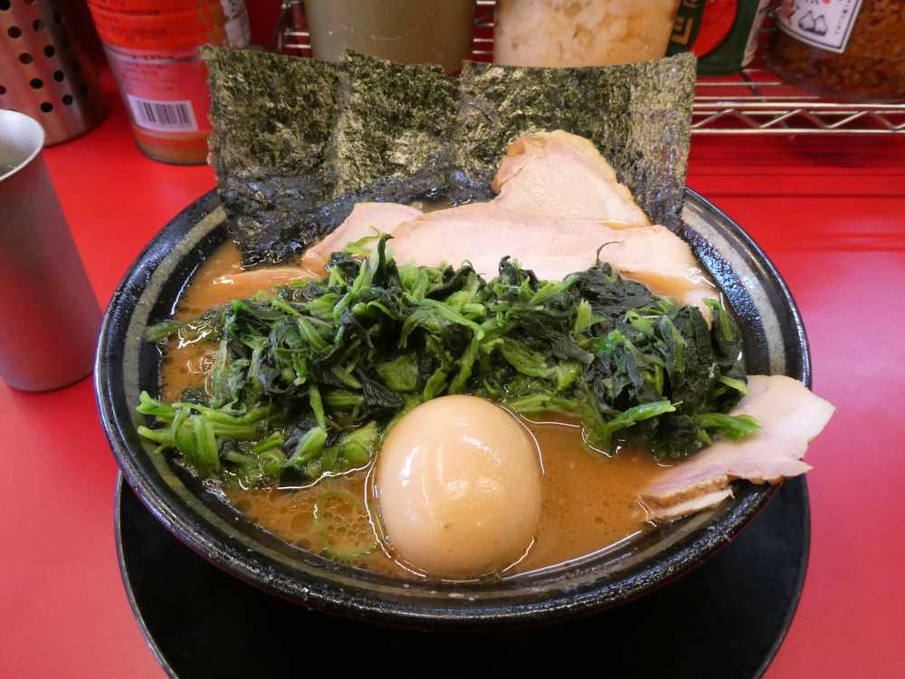 ​カタメ、コイメは 半年以上ぶり ​だ。吉村家系らしき、豚骨醤油スープはタレが直系時代に比べやや薄めになったが、出汁の濃度が高くて、なかなかおいしい。さすがだね。苦労して出来上がった平打ち縮れ中太麺はもっちりして、酒井製麺にも負けないぐらいでスープと合う。直火焼燻製チャーシューは薄切りと厚切りのものも入っている。いずれも歯切れと味付けがよい。青菜はほうれん草と小松菜を混ぜるものだ。やはり多めの野菜を摂取しないとダメだね。途中に当然、多めのニンニクを大量に投入。