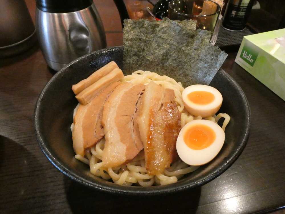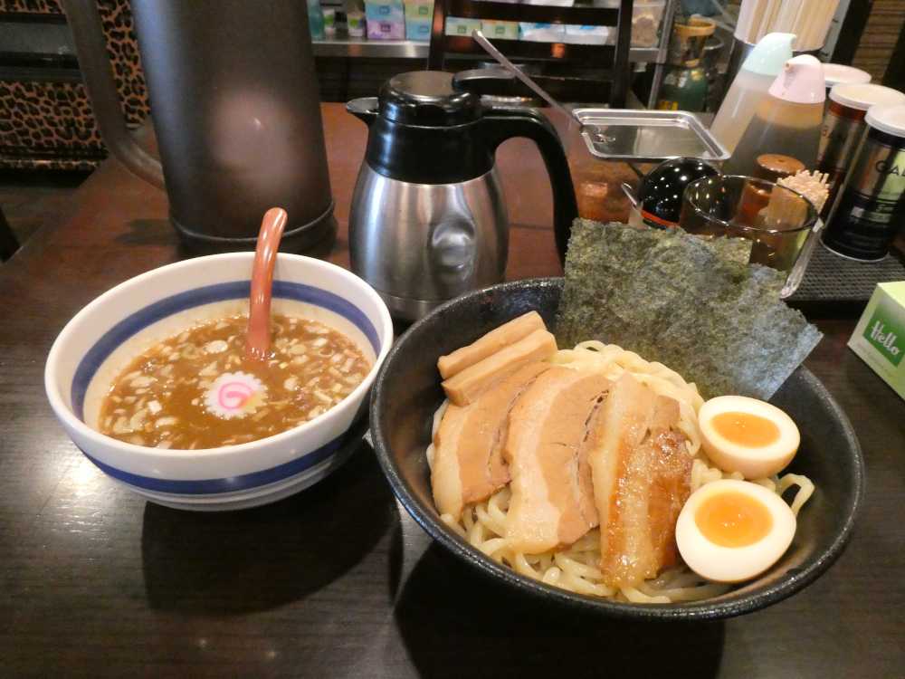 麺とチャーシューは東池袋大勝軒系と全く違うタイプのものだ。麺は縮れ平打ち中太麺で、絡めもよいしコシもあるが、このつけ汁ならもっと厚みのある麺がよいかな。チャーシューは角ふじのもので、味付けがかなり濃いめで少ししょっぱく味わえた。