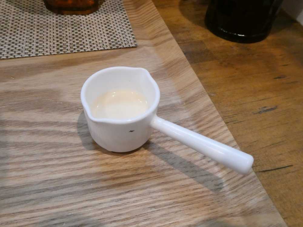 途中に味を変化させるクリームを投入。元々甘味がしっかり出ているスープにクリームを投入しても、どこまで味を変化させることができるか疑問だったが、全くしつこくないのでやはりすごい。