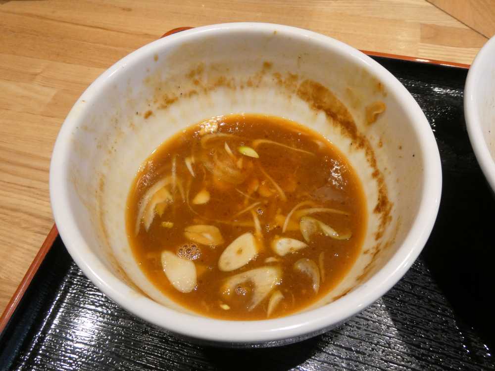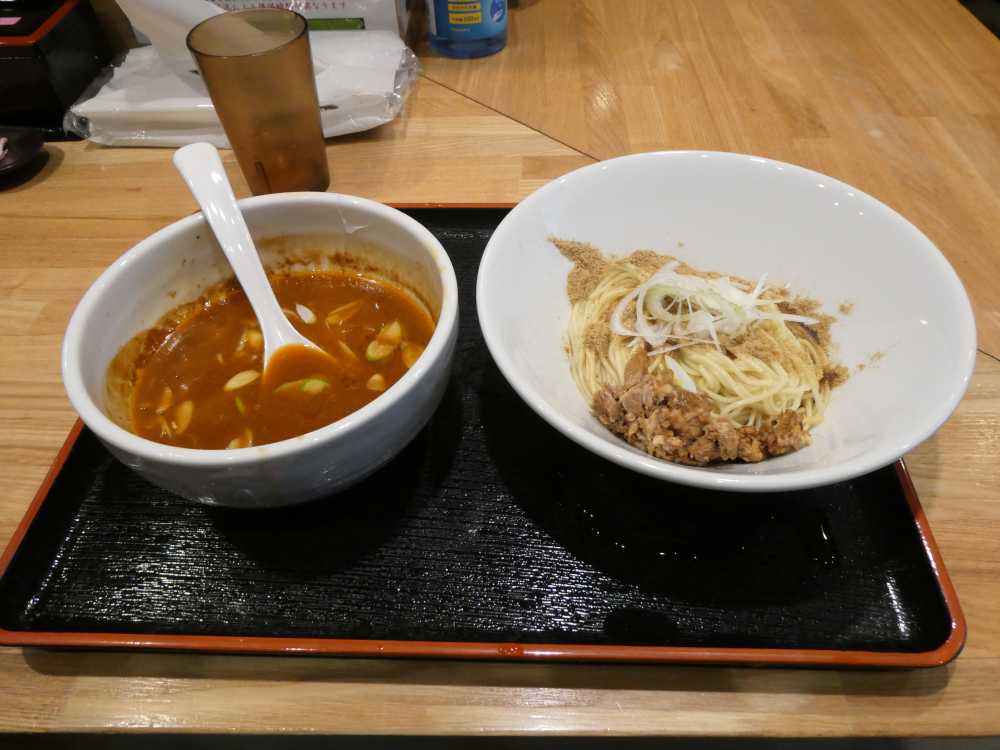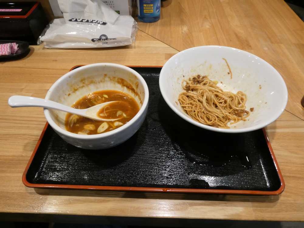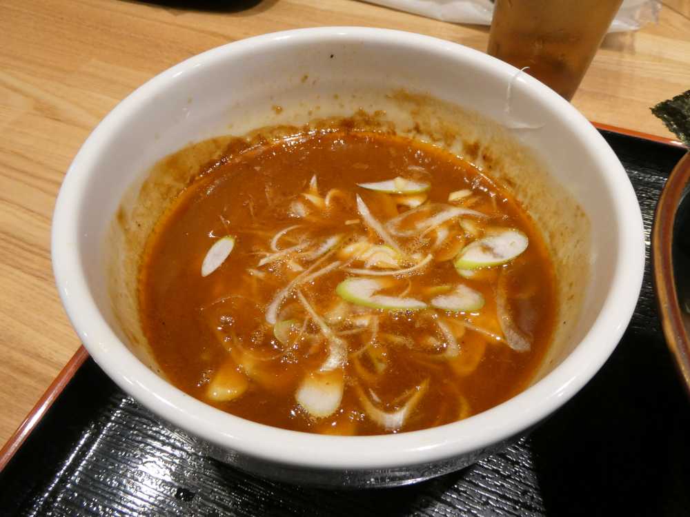 カラシビに慣れたわしにとって辛さはほどほどだが、汗がかなり出てきたので、やはり辛味が効いてるね。鶏白湯魚介味のつけ汁も濃厚で、辛味との相性が良い。
