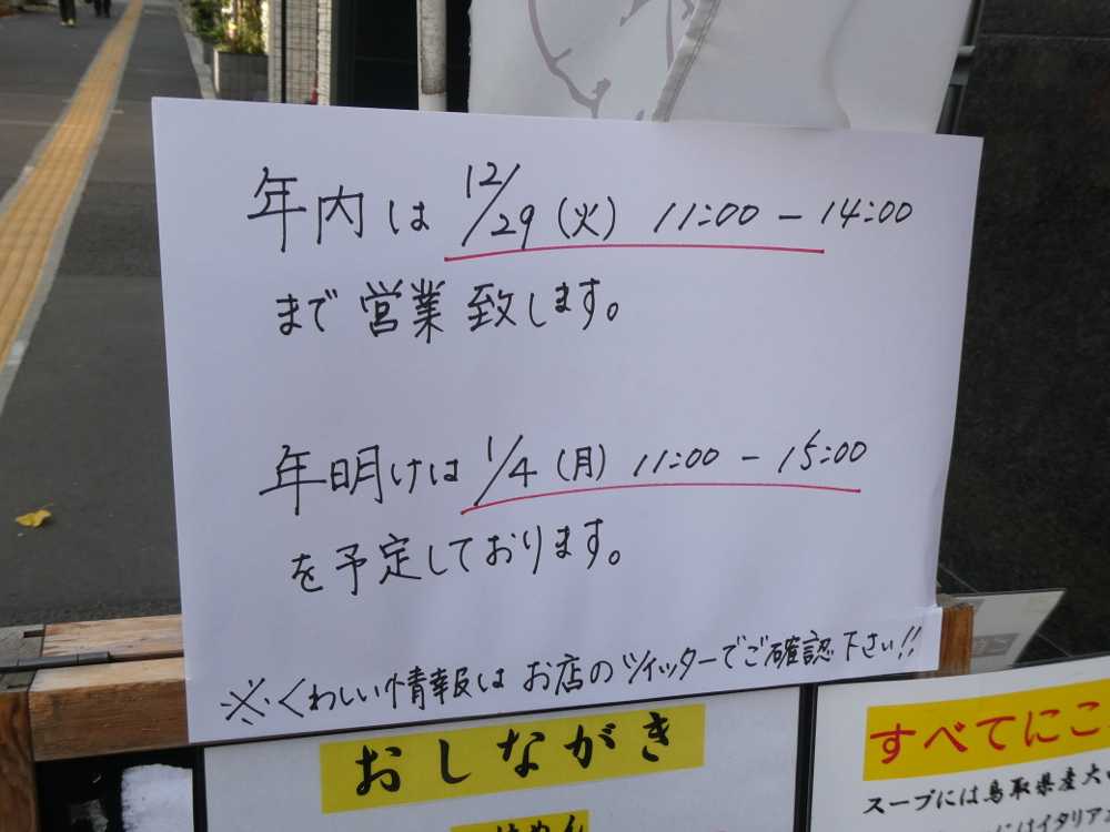 おいしかったね。この辛つけめんは残り僅かってことで、たぶん年内終了かな。2020年の営業は​ 29日火曜日まで ​、2021年の営業は4日からってこと。今年もお世話になった。来年もよろしく。ご馳走様。