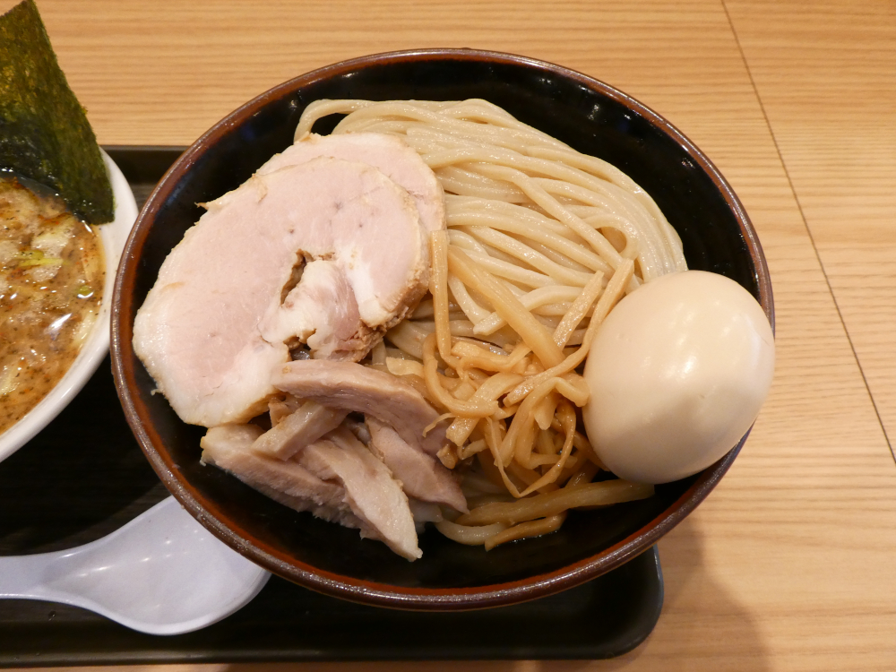 醤油タレのキレ、スパイス、Wスープというあっさりした味とされるが、スパイスがかなり効いていて、醤油味のつけ汁の旨味をほぼ抑えたように味わえた。もしかしたら、中野大勝軒系の味でアレンジしたのではないかと推測できるが、やはりスパイスの効き目でわからなくなった。