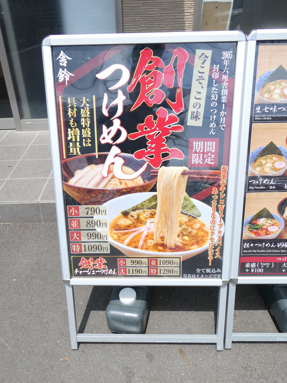 店の前に気になる看板が立たれている。元々​ 店舗限定での提供 ​だったが、​ 提供の店舗が増え ​たってこと。店の内装もかなり変わった。調べたら​ 改装 ​され、​ 亀有のお店 ​と同じ、すべてセルフサービスの形になったってことがわかった。入店し、創業チャーシューつけめん並、味玉の食券を購入してから着席。