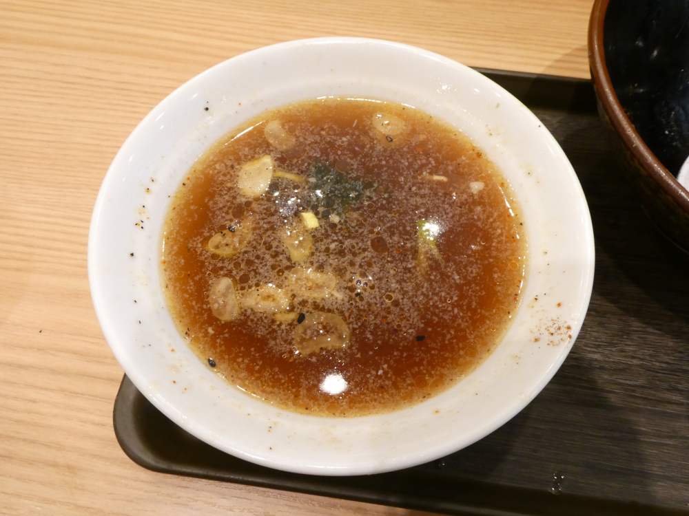 最後はスープ割。割スープを入れるとスパイスが弱まり、醤油スープの旨味が増した味になった。