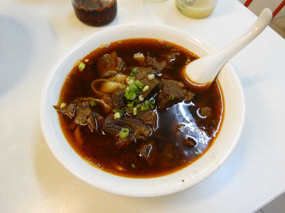 ラー油が結構効いているが、牛の旨味がしっかりしている醤油スープとの相性がよい。塩気も比較的に控えめだが、今まで食った紅焼牛肉麺のスープに比べ結構辛いほうだ。平打ち太麺は幅が結構広く、スープとの絡めや歯切れがよい。牛肉は味付けが濃い目で歯ごたえがよい。