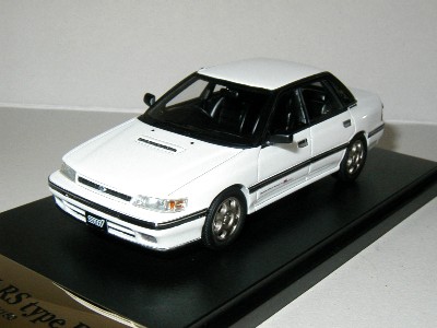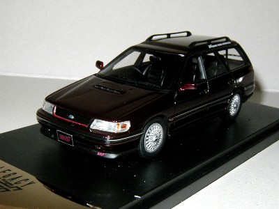 って実際はもう先週のげっちゅ♪になってます。(汗今日は同じ初代レガシィでもセダンのRSタイプRAです。これSTIの名前はどこにもありませんが、後にインプレッサで一般的になるSTIバージョンの元祖と呼べるモデルです。今年20周年を迎えたSTIが丁度20年前最初に世に送り出したモデル、それがレガシィRSタイプRAだったのです。今回のBCは、Singoふくいいんちょのジンクスとは全く無関係なモデル化なんですが、なぜ無関係かと言うとSMFCのメンバー(元?)某管理人師匠はBD(未だに全くモデル化されてません)、ちち@お~えんだんちょはBFのモデル化を強く希望し、BCは誰も乗っていなかったために特に希望されなかっただけなんです。(爆製作担当のSingoふくいいんちょは、ご自分の希望する車種は時間こそかかれきちんとモデル化し、我々平会員の勝手な希望にはちょこちょこっと弄って優しく応えてくれていたわけなんです。(笑それはさておき、STIの1/43レジンモデルも一体何作目になるんでしょうか、NS20090010と付番されたレガシィRSタイプRAがこれです♪昨日のBFと今日のBC、いずれも150台限定で、ちちのはBFが145/150、BCが15/150というシリアルでした。昨日のBFはマイチェン後の平目タイプでしたが、このRSタイプRAは1989年11月の発売でしたので、キツ目の初期型です♪このツーリングワゴンは平目、セダンはキツ目の組み合わせでのモデル化って、かつてのハセガワの1/24プラモを思い出しますね。当時、この両車を組み合わせてBF初期型を作ろうとしたことを思い出してしまいました。(遠い目ブログランキングに参加してますのでちょこっとご協力お願いします♪にほんブログ村