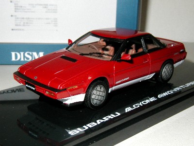 本来であれば、このDISMのアルシーネ(スバルXTクーペ)は、このちちのブログでも大特集を組んでご紹介していたところでしたが、生憎とSTIのレジンモデルと発売が重なってしまうという不運なめぐり合わせで、今ごろ2色めのご紹介です♪(汗同じレジンモデルでも、お値段はSTIの半分(お店によっては以下笑)で購入できますし、希少性から言ったらほぼ拮抗してるのにこの差は何故でしょう?それはちちがレガシィオーナーだったから。(爆それはさておき、BFこそ初のモデル化でしたが、BCもこのXT(アルシオーネ)も、共に1/64では既に発売済みで、待望の1/43ということで何はともあれ大歓迎です♪日本でこそ、特異なデザインのクルマと言うだけであんまり評価されてませんでしたが、海外では結構受けが良く、今でもXTに現役で乗っているがモデルカーは無いのかと探しているユーザーからメールを貰ったりしてます。こちらのビッグビィさん、複数台購入するなら送料別、1台で購入するなら送料込みがお徳です♪1/43 E-AX7 スバル アルシオーネ 4WD VR TURBO (インペアルレッドM/ホワイト) アオシマ文化教材社(発売中)【送料無料】1/43 E-AX7 スバル アルシオーネ 4WD VR TURBO (インペアルレッドM/ホワイト) アオシマ文化教材社(発売中)【NEWショップ】ブログランキングに参加してますのでちょこっとご協力お願いします♪にほんブログ村