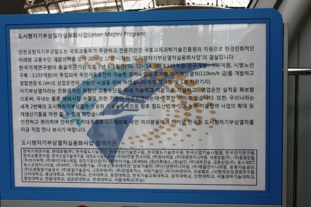 日本のリニアと違って超電導の磁石ではなくて常電導吸引式という方式らしいです。一応上の説明だと110㎞/hの設計らしいのですが実際に乗ってみると100㎞も出ていないようでせいぜい出ても70~80㎞ぐらいかなあといった感じでした。