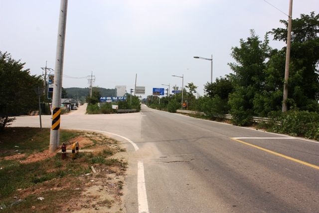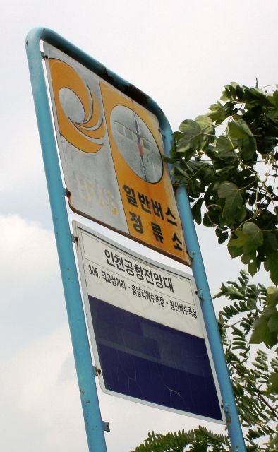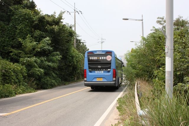 仁川空港展望台バス停で降りたところで乗ってきた仁川バス306番をカシャッ・・・木が生い茂るだけの田舎道・・・右手にはなんだか飛行機のエンジン音とかするけど・・・