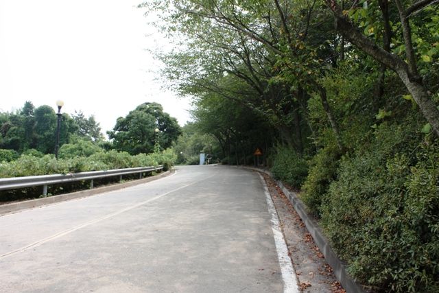 バスを降りてバスの進行方向にしばらく進むと、写真のように左手になんだか丘の上へ向かう道が出現。