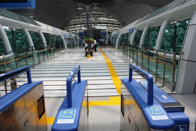 仁川国際空港に空港鉄道で到着したら、チェックインカウンターのあるターミナルの方へ行かずに同じ建物・交通センターの上の階に行くと空港磁気浮上鉄道の改札口があります。