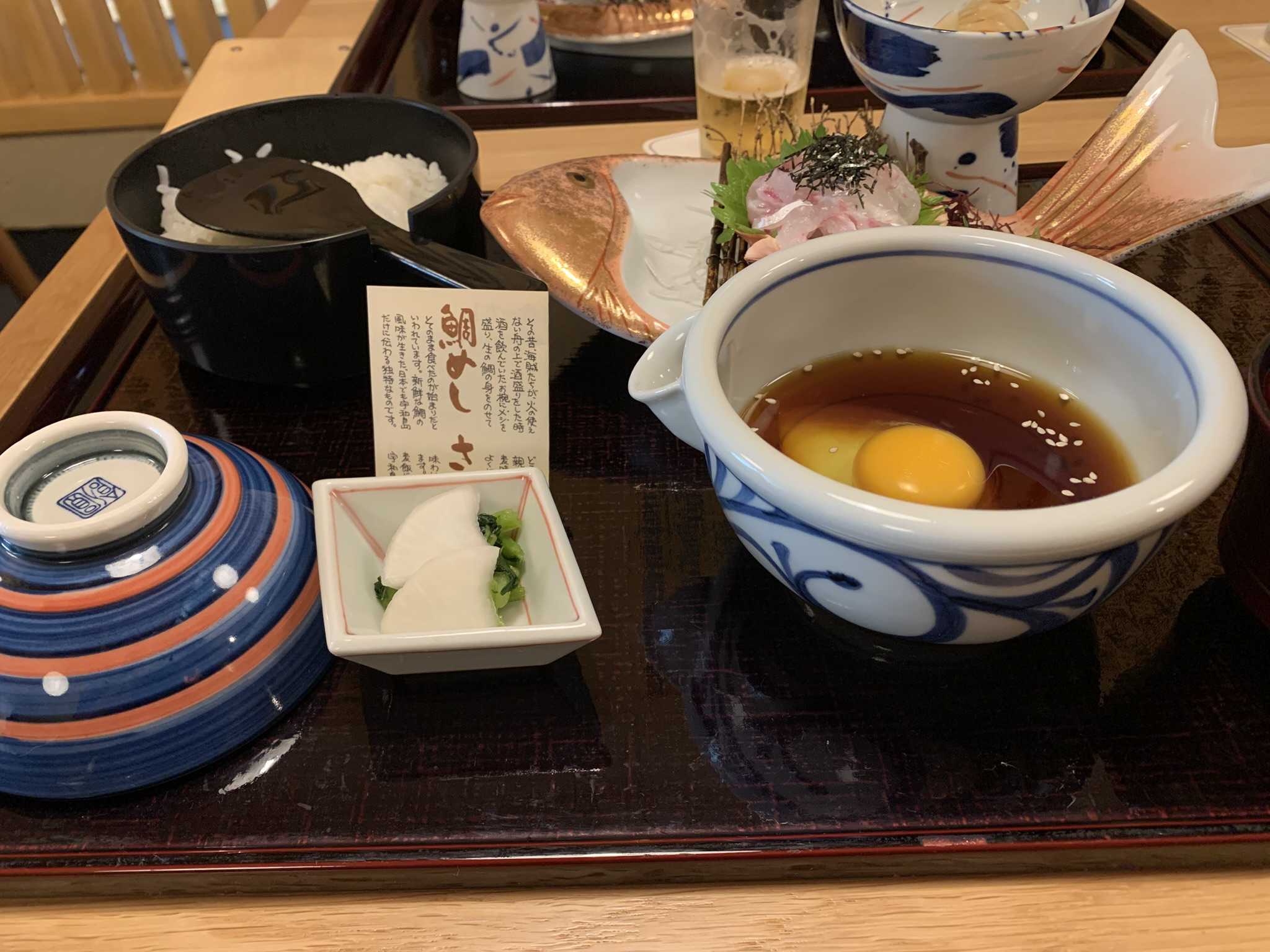 「鯛めし」おそらく多くの方は風味豊かな鯛の身が入った炊き込みご飯を想像するのでは…私の街の郷土料理「鯛めし」は鯛の刺身を生タマゴの入った出し汁に入れてあたたかいごはんに刺身とともにそのままぶっかけて食べるいわゆる卵かけ風の料理県内産の新鮮な真鯛の刺身と生卵の相性抜群!お昼のランチやお酒を飲んだ後のシメにサラッと食べる最高の郷土料理です♫手前の生卵を混ぜて→鯛の刺身を入れるそのままご飯に刺身と生卵をかけると出来上がり☆☆☆愛媛はミカンのイメージが強いけど真鯛の養殖生産量も全国1位!魚がとても美味しいです☆*:.。宇和島市の郷土料理店「かどや」で久しぶりの食事♫冷たいビールも美味しかった〜☆☆☆