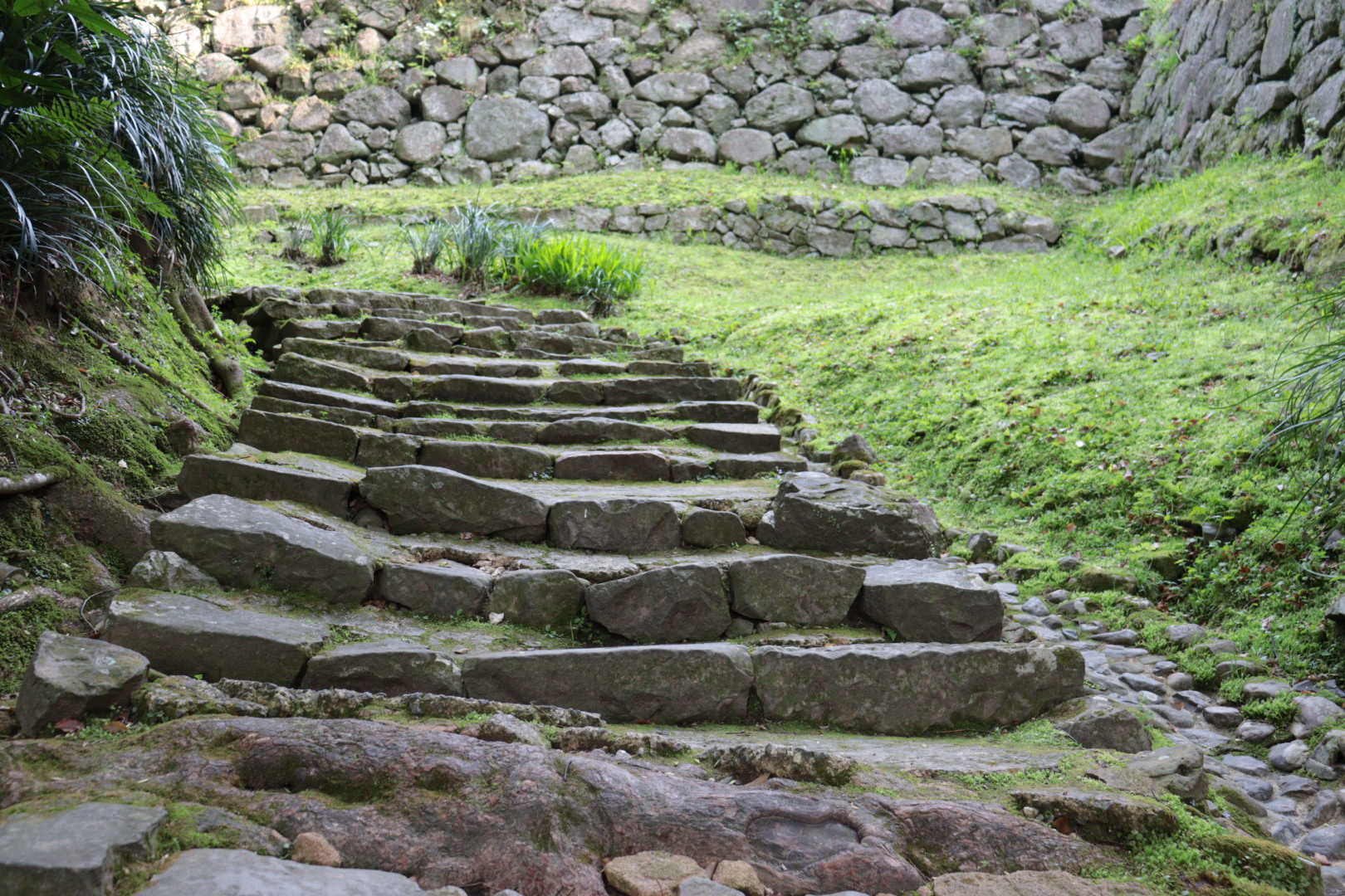 いつの間にか4月中旬になりました満開だった桜も今は葉桜そして我が家のチューリップ達も散ってしまいプランターには細長く伸びた茎だけが残った状態です今日は妻の定期検診で朝8時から市立病院へ検診が終わるまで1時間以上かかると言うので待ち時間の間すぐ近くの城山を散策しましたこれまで何度もブログで紹介しているこの城山病院から歩いて登り口まで5分登り口からこのような石段を約10分程歩くと天守閣に到着します約420年前に築かれた城内で一番古い石垣傍らにきれいな花が咲いていました石垣を見上げながら400年前の時代に思いを馳せていました石垣の角っこに積み上げられた石は「算木積み」と言って立方体の石の面を交互に積み上げていますまた石の表面がデコボコしているのは光の加減により陰影がつくよう当時の職人がデザイン上のこだわりがあるそうです周囲の山の木々も少しずつ緑色が濃くなっていますさっき迄居た病院内の慌ただしさとはうって変わり別次元のような静かで穏やかな空間がここに広がっています数ヶ月前から目が霞むなど視力の不調を話していた妻老眼だろうとお互い笑っていたのですが10日前朝起きた時片方の目が全く見えないと言うので慌てて病院へ連れて行ったところ白内障との診断しかも両目…6月に手術する事になりましたそれ迄の間片方の目だけの生活買い物に行っても価格が見えにくいらしく同伴する事もたびたび視野も狭くなった影響か躓きそうになる事もあったようで行動を共にすると腕を組みたがる(笑)恋人同士じゃあるまいし恥ずかしいからやめてほしい…と言うと上着の裾をつまんで歩くようになってこれもなんだかなぁ…早く手術が無事に終わって今まで通りの生活に戻ってほしいな☆*:.。. o健康には自信過剰気味の私こうした予期せぬ出来事も普段忘れかけている健康で当たり前の生活を送れる有り難さを再確認するきっかけになったように思います