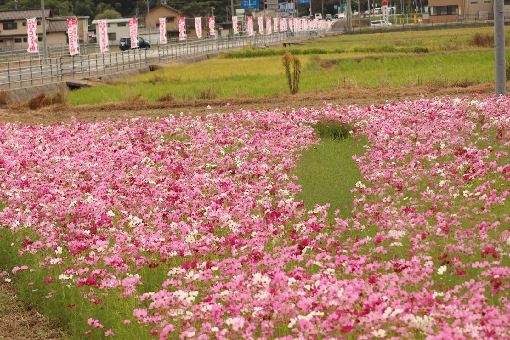 朝晩秋を感じる心地よい風が部屋に入ってくるようになりましたただ日中の気温は30℃近く今も半袖のTシャツとハーフパンツそんななか私の街では毎年恒例のコスモス祭りが今日から開催されました稲刈りが終わった後の田んぼに植えられたコスモス♫風に身を任せながら細い茎でしなやかに立ち続ける姿はとても美しいです☆*:.。. o
