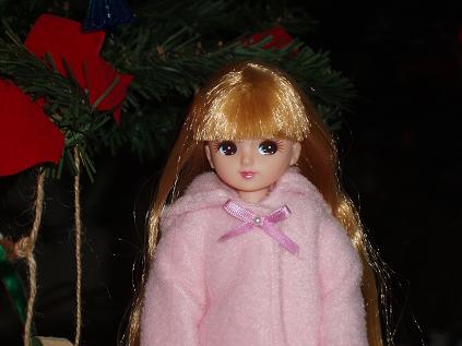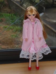 ピンクのコート、襟元はリボンとパールビースで飾りました♪