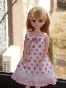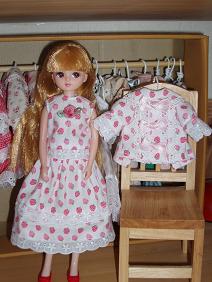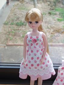 朝いつもどおりに(いや、少し遅く)起床。今日は長男を小児科に連れて行こうと思っていたけど、熱も下がり咳もおさまりつつあるので、家庭用の吸入器と処方された残りの薬があるので様子を見ることに。天気が悪いので(昨日も)すっきり洗濯物が乾かず、部屋干ししていた洗濯物と今日洗濯分を入れ替わりに干し、食器を片付け夫に何も言わずに(出かける姿だけ見せて)家を出ました。朝から息子2人はなかなか言うことを聞かず、私は長女の発熱以来小児科ぐらいしか外出していないので鬱憤が貯まっていて娘に離乳食とミルクを取らせ、オムツを換えてから出かけました。プチ家出・・・。(私はいまどきの人間ではないので、携帯電話は持ってません。)と言っても、長男の月曜日の図工でいる材料を買い、生地やさんに行き、スーパーで昼食と夕食の買い物をして帰宅。2時間もかかりませんでした。それでも、いつも待たれているとゆっくり見られない生地や手芸材料を見たり、欲しいものを買って(といっても、少しずつ布地をカットしてもらいちょこちょこ~っと買うぐらい)ちょっとすっきりしたかな。残念ながら、娘のワンピースを作るための別珍は殆ど置いてなくて、でもまあ着せたい誕生日や初節句まではまだまだ間があるし、今度は別の生地やさんに行ってもいいかあ~と思いました。今日は午後からPTAのミニバレー大会。夫は参加することになっているので、その外出までに昼食の支度をしなければならなかったので、久々につけた腕時計を見ながら行動しました。↑新作~♪既製品のリカちゃんのお洋服はいろんな柄柄を組み合わせてかわいく作ってあるので、私も柄を合わせて作ってみたくって挑戦してみました。エプロンっぽい感じかな?お花は赤とどちらにしようか迷ったけど、やさしい感じなので同色でまとめましたこのイチゴ柄、少ししか買ってなかったので買い足したかったのですが、他のバザー用に買った生地はあったのに、これだけはもうありませんでした。人気あったのかな~。