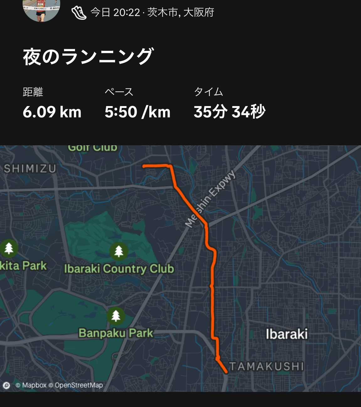 帰宅ランです。朝走らなかったからか、軽かった。いつもこんな感じならええなぁ。明日はペーランやっときたいが疲労抜きになったか⁈