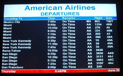 Los Angelesについきました。United Airのターミナル6番からAmerican Airのターミナル4番へ移動です。Check Inを済ませ、ターミナルでありふれたメキシカンを食べました。(あっ、写真撮るの忘れた!)AA10便 21:30発 New York JFK行きです。このフライトを利用するとNew Yorkには朝の5時50分に到着しますので、交通渋滞前に本社に入れます。朝9時から会議の時は、大変便利です。但し、会議中かなり眠いです。今日の出発ゲートは49Aです。機材はB767-200、これが結構年代ものなのです。飛行時間は4時間50分、定刻に出発し、到着は定刻より10分ほど早かったです。 今回の取得Fly Onポイント1,721 ポイント2008年累計取得ポイント29,020 ポイントJGC プレミア ステータス達成まであと!50,980 ポイントJGC-P ステータス達成率36.28%