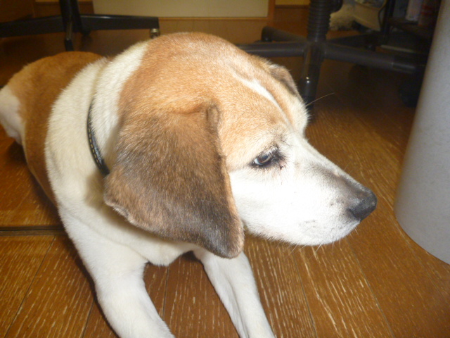 ハンちゃんもうすぐ15歳。15年前の秋に小室山のテニスコートに捨てられてたのをたまたま14番コートで男子ダブルスをやってたときジョンさんが「コノナカデ犬ヲ飼ッテナイヒト~?」つい手を挙げたら「ハイッ!決マリ!今日カラ、タナカさんノ犬ダヨー」今年の夏も暑くなりそうだけどハンちゃん頑張っておくれ。