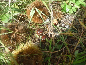 台風18号が去って駐車場に落ちた木々の枝葉を お掃除してたら山栗もいっぱい落ちてました! 今夜の晩御飯は栗ご飯だー!