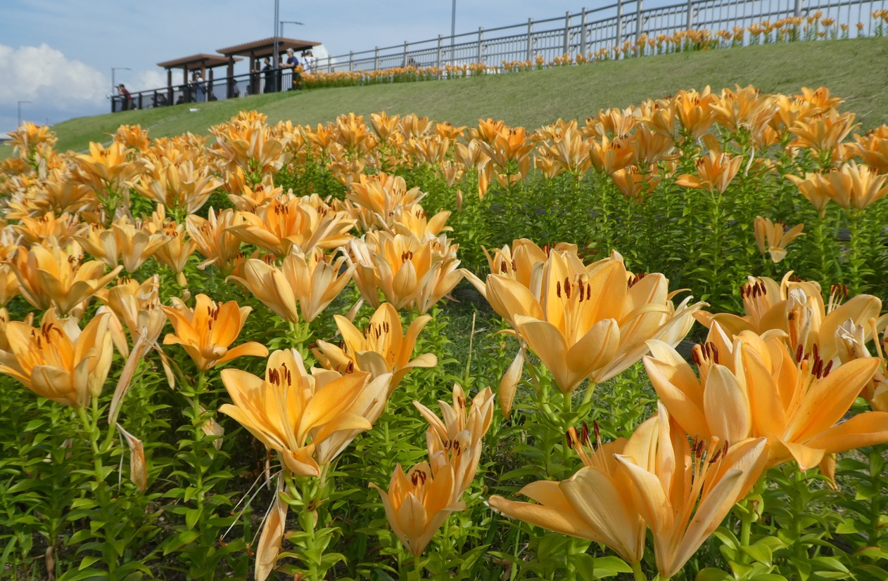 スカシユリが咲き誇る 上の展望台からは、羽田空港を離発着する航空機を身近に見れる