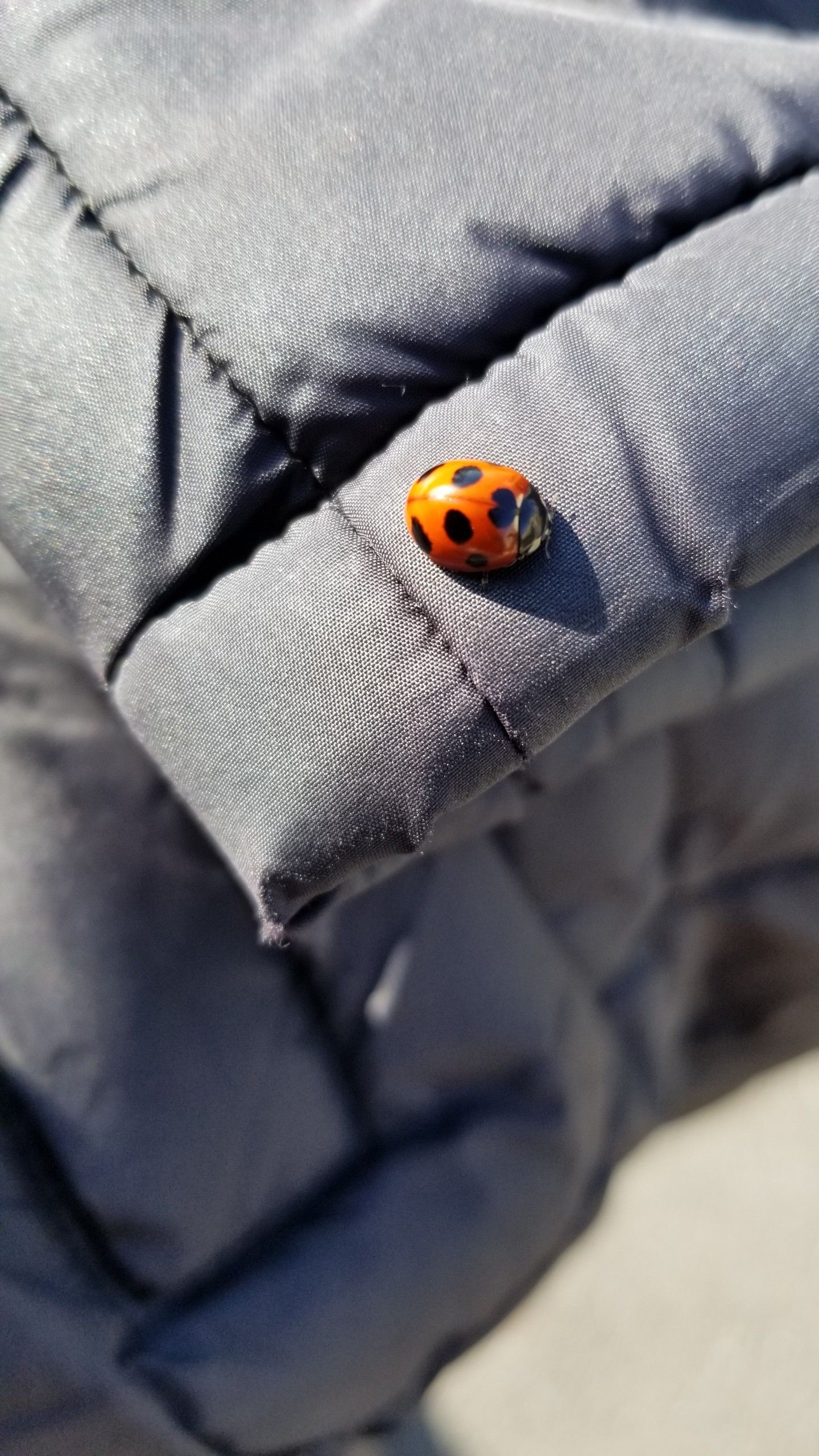 バスの停留所で、のど飴を出そうとバッグを置いたら、コートにてんとう虫がとまってるのを見つけた。 つついても逃げずに向きを変えたり、移動したりしてる。 バスが来たので近くの植え込みの葉っぱの上に乗ってもらった。 てんとう虫は幸運の兆しといわれている。 聖母マリアや天照大神のお使いという説もある。 病気がある人の体に止まれば、体調がよくなる兆し。 このところ、咳が止まらずにしんどい日が続いてるので、鎮まってくれるといいな。 それにしてもかわいい🐞😊💕 by 弥勒