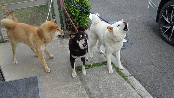 今日は土曜日。福岡南部地方はすっかり天気も回復し、青空が広がり始めていました。ただ予報によると明日の天気はまた下り坂。そして来週後半もぐずついた天気が続く見込みで、この田舎町も週明け以降は梅雨入りのタイミングを窺う一週間となりそうです。こちらは朝の散歩風景。白黒コンビの体力強化も兼ねて、のんびり気分で長めにコースを取って朝のロードワークへと出掛けてみました。ここにきてようやく少しずつ体のキレの戻りが感じられ始めた気がするナツマリ。この日も先導役を務めるナツ坊のパワーと終盤までスタミナ切れすることもなく完走してくれたマリの軽快な歩調を感じながらの散歩道となりました。今日は久々にトラの家にも立ち寄ってみました。両親の思いがけぬ訪問にトラも大喜びで二匹を歓迎してくれていました。この日もマリに甘える様な仕草を見せていたトラ。母子の会話がひと区切りついたことを確認して、お留守番役の結が待つ我が家へ向かって再びコースを進んで行きます。帰り際に玄関にてお見送りしてくれたトラを一枚。「トラ、ありがとね!もう少し結が大きくなったら、今度は結も連れてみんなで遊びに行くからね!」帰宅すると散歩中の福助がママさんと我が家に立ち寄ってくれていました。(嬉)白黒コンビと一週間ぶりの再会の挨拶を交わすも、マリ婆の迫力にちょっぴり気後れしてしまってる様子のフク。(笑)フクもずいぶん成長したことだし、もう少し躾モードのスイッチを緩めてあげてもいいんじゃないの?傍から見てるとついそんなことを思ってしまいますが、可愛い来孫を思うマリにはマリなりの哲学があるのかもしれないですね。(楽)ご家族の皆さんの深い愛情と適切な管理のもとで順調に成長を重ねているフク。ロードワークも始まり、これから逞しいオトコを目指して更なる成長を重ねて欲しいと思います。フクのご家族の皆さん、いつもありがとうございます!!「フク、またおいでね!ナツマリ結と待ってるからね!!」フクやフウのご家族を始めとするファミリーの第6世代のご家族の皆さんの中には日本犬の本質の理解に努め、愛犬との生活をより充実したものにしたい、といった意識の高い方々が割といらっしゃるような気もします。ファミリーの皆さんに感謝しつつ、そうした皆さんの前向きな気持ちに少しでも寄り添える様にまだまだ不勉強ながら私もまたより精進を重ね、皆さんと柴ワンコライフを一層楽しむことができたらと思う今日この頃です。