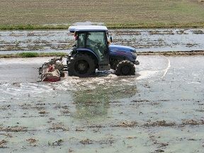 こちらは朝のひとコマ。朝のロードワークの準備を始めたところで、俄かに4匹のテンションが上がり始めます。振り返るとその視線の先には、パパさんと朝の散歩の途中で立ち寄ってくれた福助の姿!(嬉)完全に躾モードスイッチが入ってる白黒コンビの迫力にちょっぴり屁っ放り腰になりながらも挨拶を試みるフク。ご家族の皆さんとの日々の積み重ねの中で福助もまた少しずつ逞しくなりながらオトナの階段を上っている様子が感じられ、私にとっても嬉しい楽しい朝のひとときとなりました。こちらは夕方の散歩風景。結も一緒にみんなで出かけてみました。今日は終日デスクワークを中心に大忙しな一日だったこともあり、6月の風の心地よさが格別なものに感じられる様な気もします。こちらは日中、みんなと離れ離れで過ごす結。大好きなマリ婆と肩を並べながら歩を進めていきます。女の子同士どんなおしゃべりに花が咲いているんでしょうね?(楽)散歩コースの田には大方水が入り、順次田植えの作業が進み、それに伴って水鳥たちがあちらこちらに集まってくる姿が見られる様になってきました。なみなみと水が張った田を闊歩する白鷺。そうした光景を時折ライトや結も立ち止まって興味深げに眺める姿を見せていました。若い二匹には初めて迎える季節の中で目にしたり触れたりするこうしたいろんなものを通して感性の芽をグングン伸ばして欲しい、そんなことを考えながらライトや結の背中を眺めていました。作付けされた苗が綺麗なラインを描く田んぼにその日の天候や時間によっていろんな空の表情が映し出されるこの季節はこの田舎町が美しい景色を見せる時期でもあります。そう言えば今日は夏至でした。今年も間もなく折り返し、ホントに時が経つのは早いものですね。先月に続き、今月もまた天候に恵まれた日が多かったこともあり、今年は例年以上に日が長くなっていくのが実感できた様な気もします。それにしても今年はホントに雨が降りませんね。今年の梅雨入りはいつになるのかな??