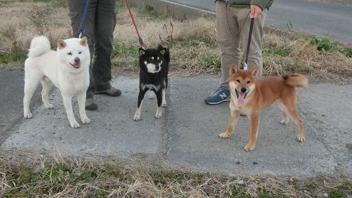 我が家に遊びに来てくれた福助とパパさんと今日は途中まで夕方の散歩をご一緒させて頂き