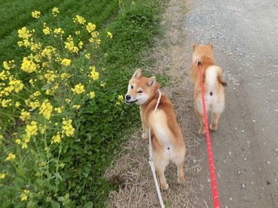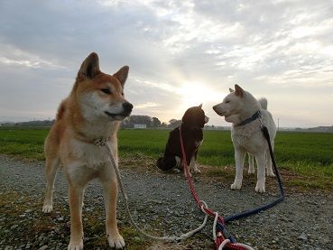 ロードワークを終えた白黒コンビとともに姫の散歩へと今朝ものんびり出かけてみました。