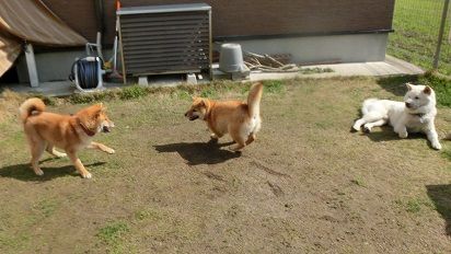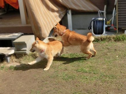 まったりモードのナツマリを余所にその後も姉弟の庭遊びは続きます。(楽)