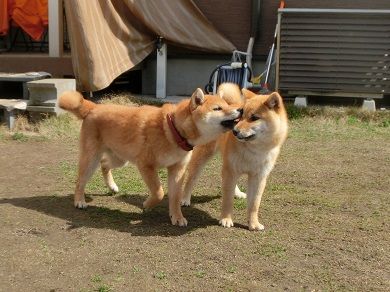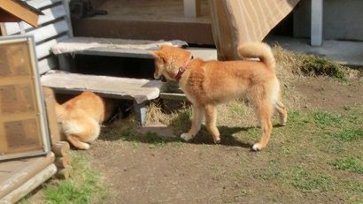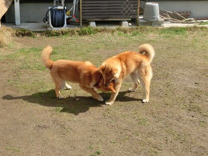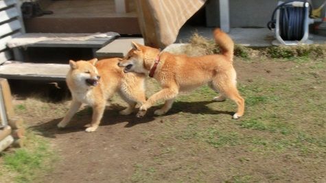 充実した表情を覗かせる二匹から、庭遊びの楽しさが伝わってくる様な気も思えます。