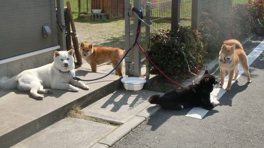 お昼のプチ散歩を終え、揃って束の間のまったりモードに入った4匹を一枚。