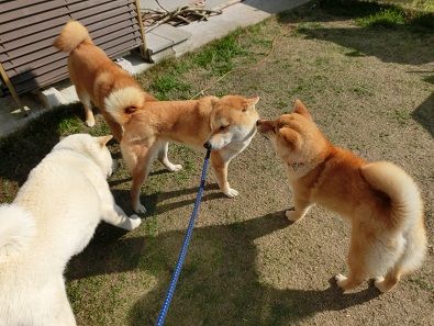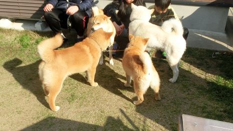 のんびりとした雰囲気の中、犬同士、そしてライトや結はモモカのご家族との交流も