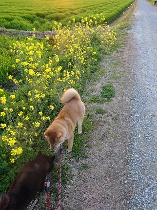こちらは夕方の散歩風景。