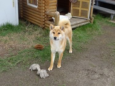 この日はなかなかログハウスから出てくる気配を見せない雨嫌いなマリ婆に「大婆ちゃま、